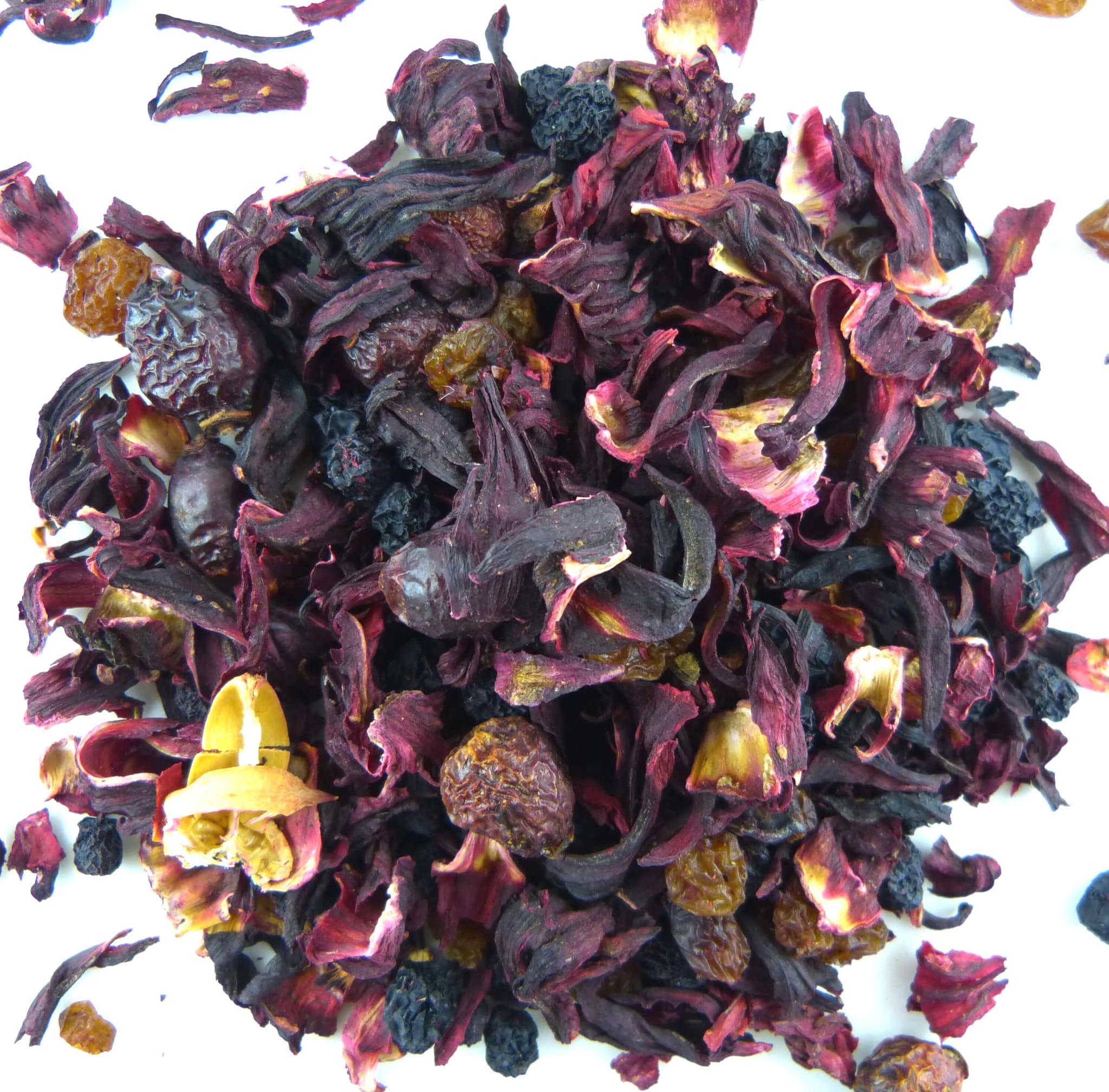 - Skład: hibiskus, owoc dzikiej róży, rodzynki, owoce aronii, aromat naturalny
