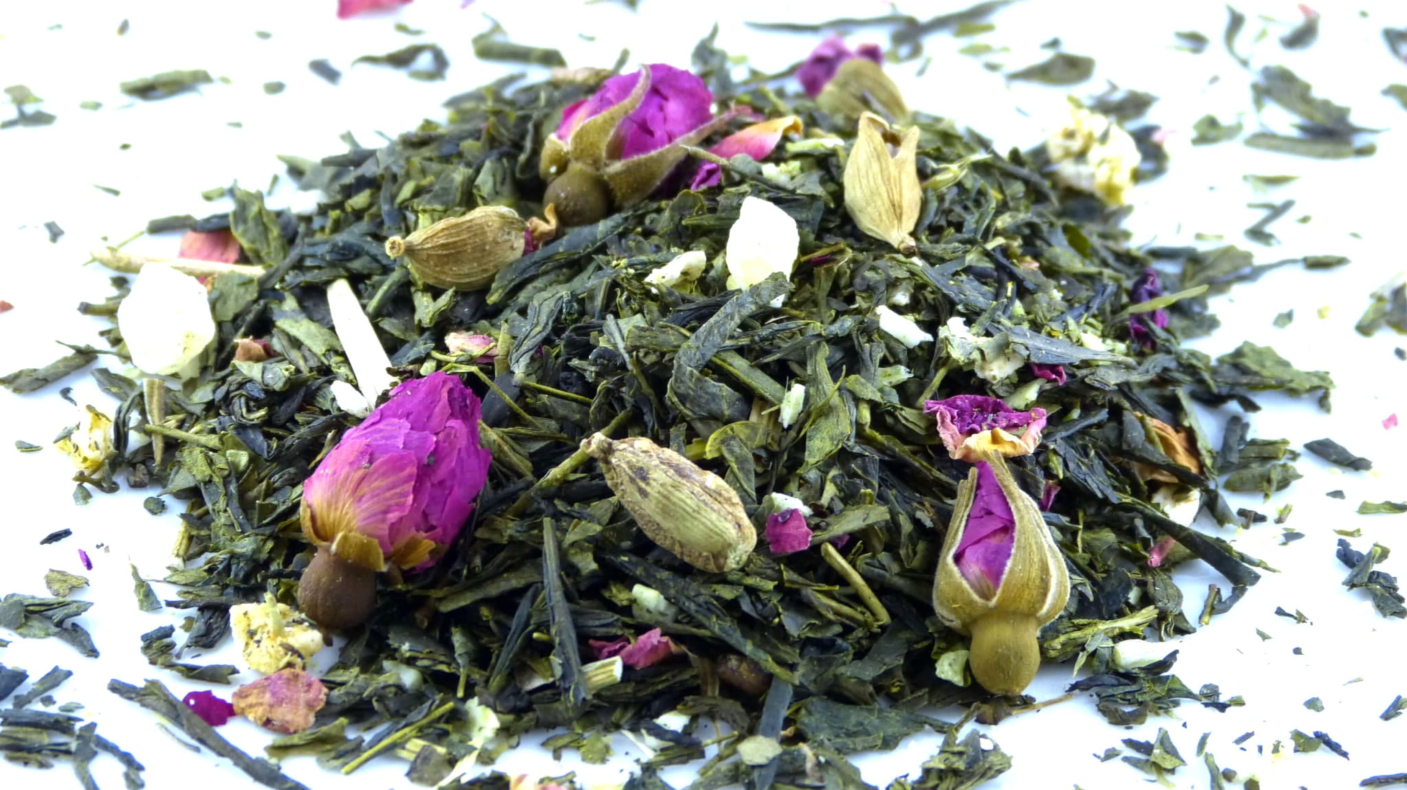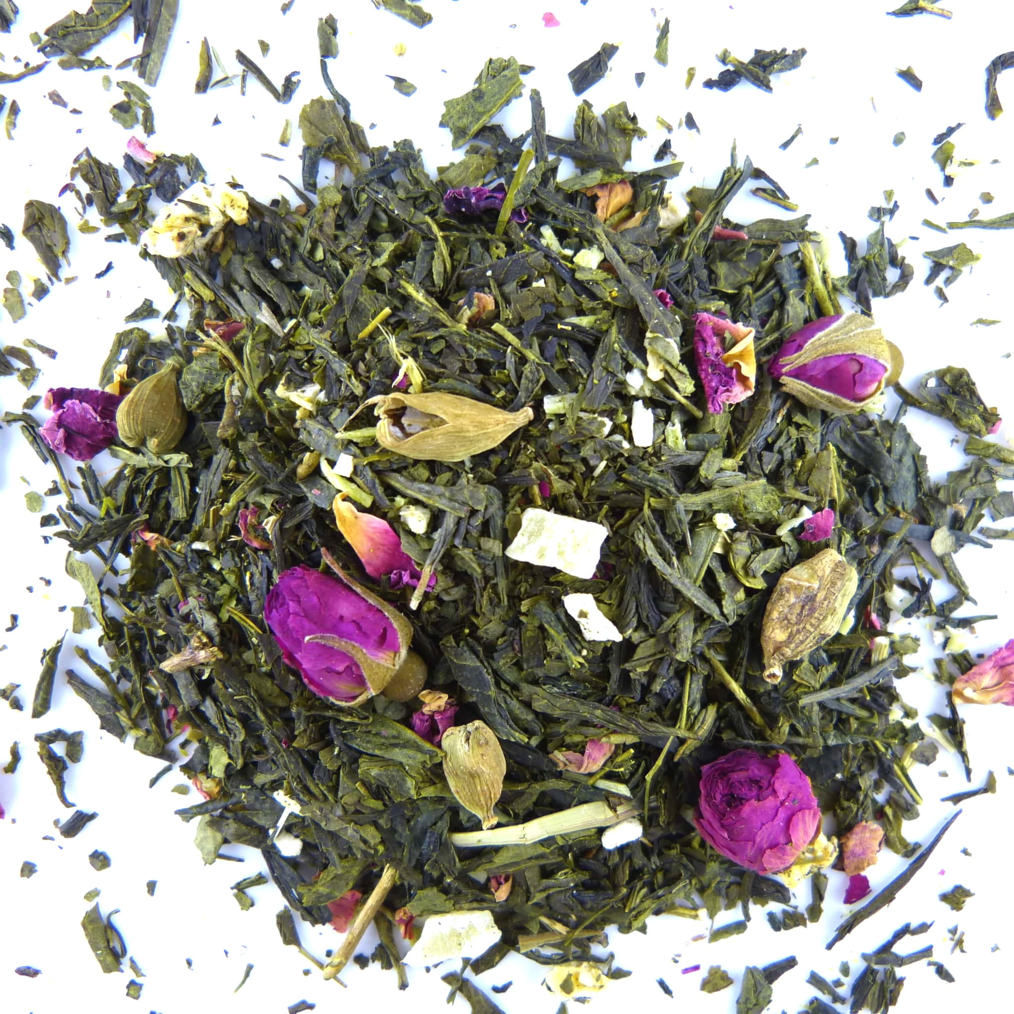 Ta herbata to wyrafinowana mieszanka inspirowana harmonią i pięknem natury. Do delikatnej chińskiej senchy dodano wyjątkowe dodatki, które tworzą niezapomniany smak i aromat - pąki i płatki róży, kardamon, ananas kandyzowany, wiórki kokosowe czy mango liofilizowane.