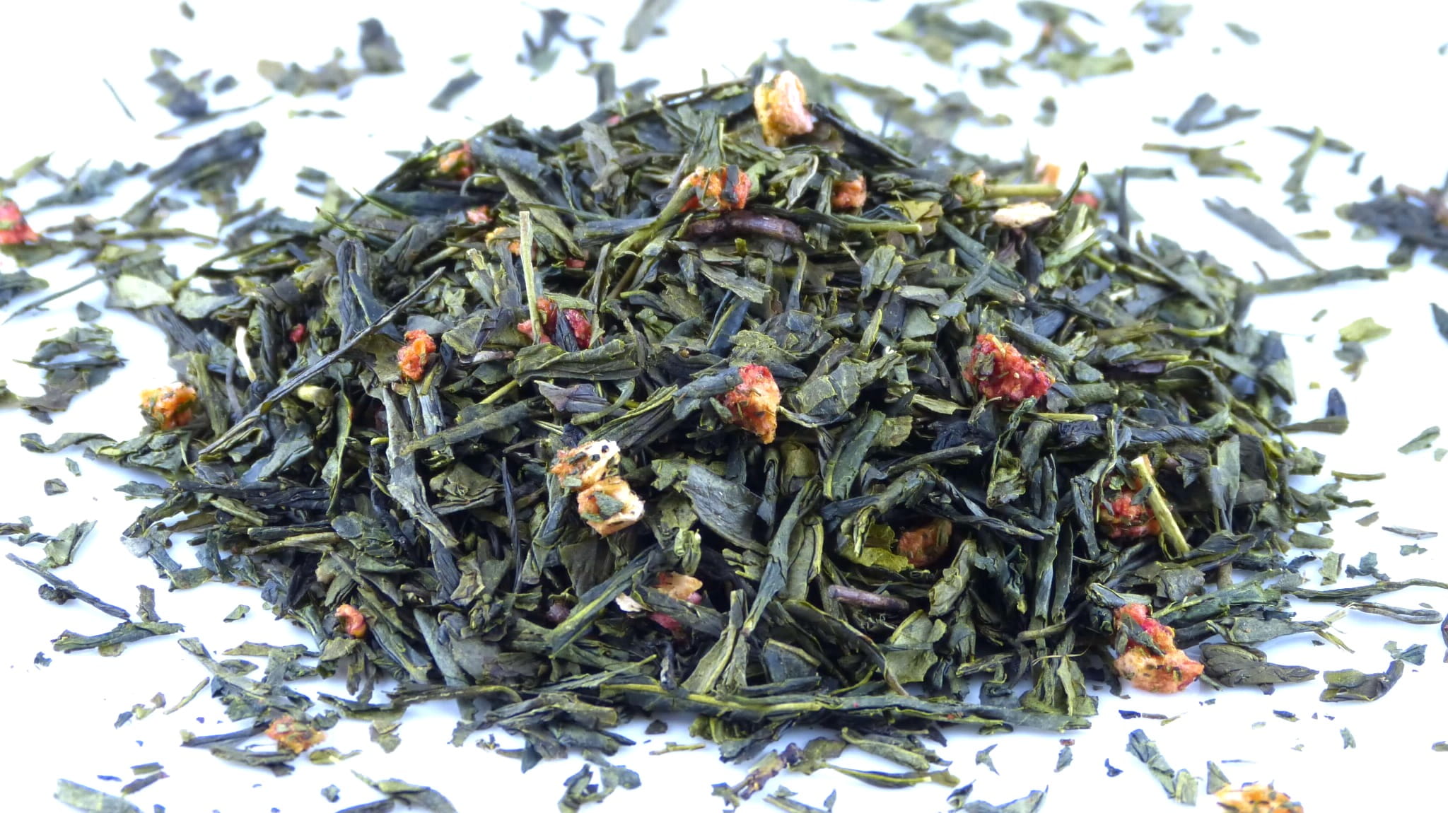 - Skład: herbata zielona Sencha, aromat, truskawka liofilizowana grys, poziomka liofilizowana grys