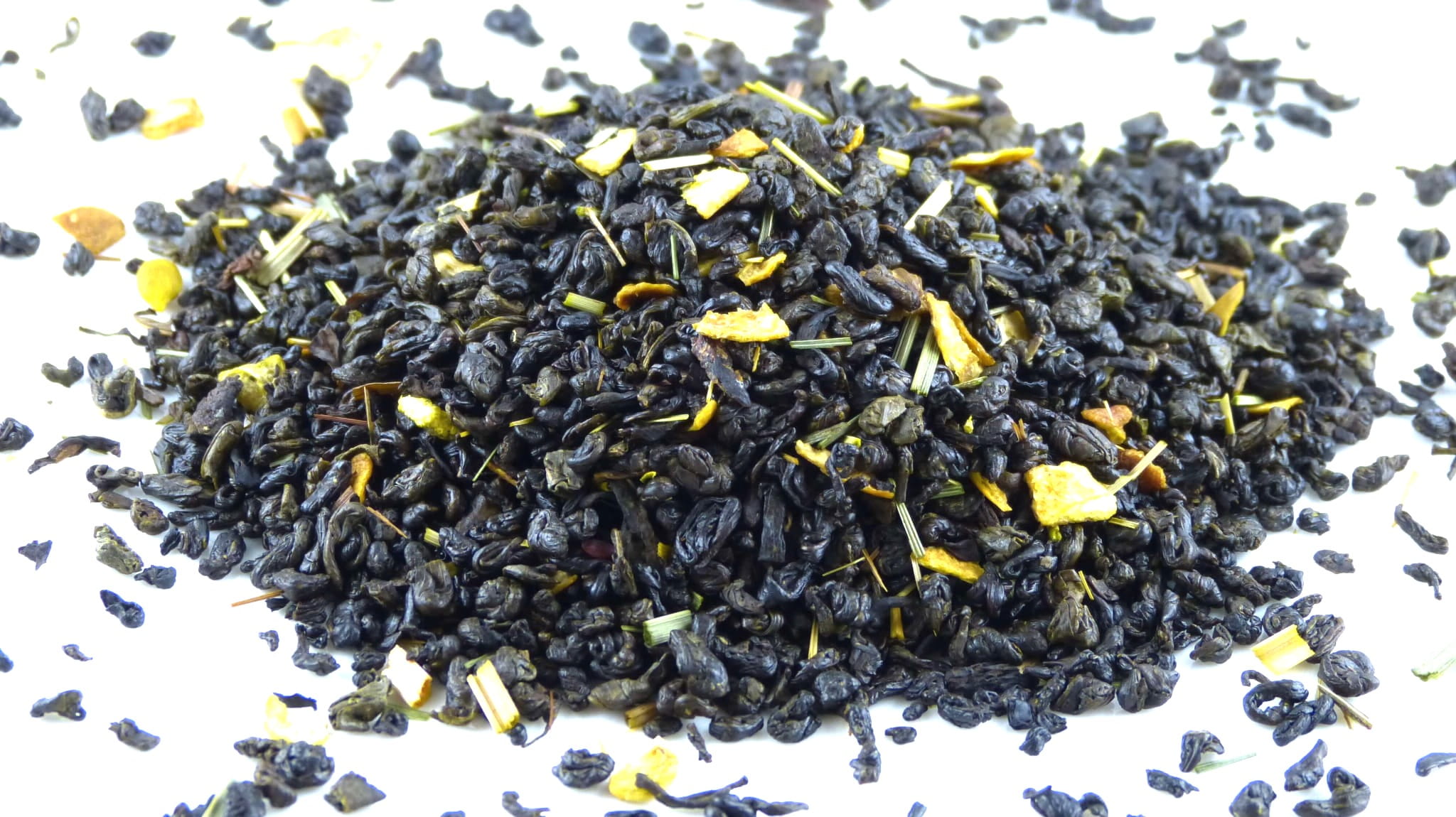 Herbata zielona typu Gunpowder Temple od Heaven wzbogacona skórką cytryny oraz trawą cytrynową o orzeźwiającym aromacie.