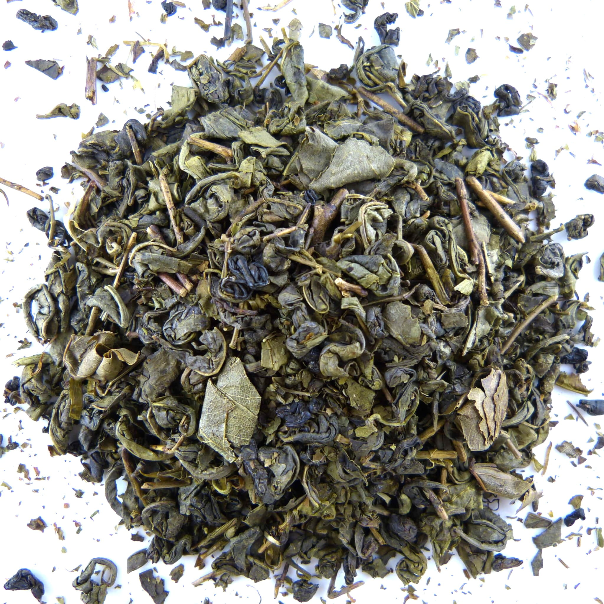 Mocno orzeźwiająca herbata Gunpowder z dodatkiem suszonej mięty pieprzowej.