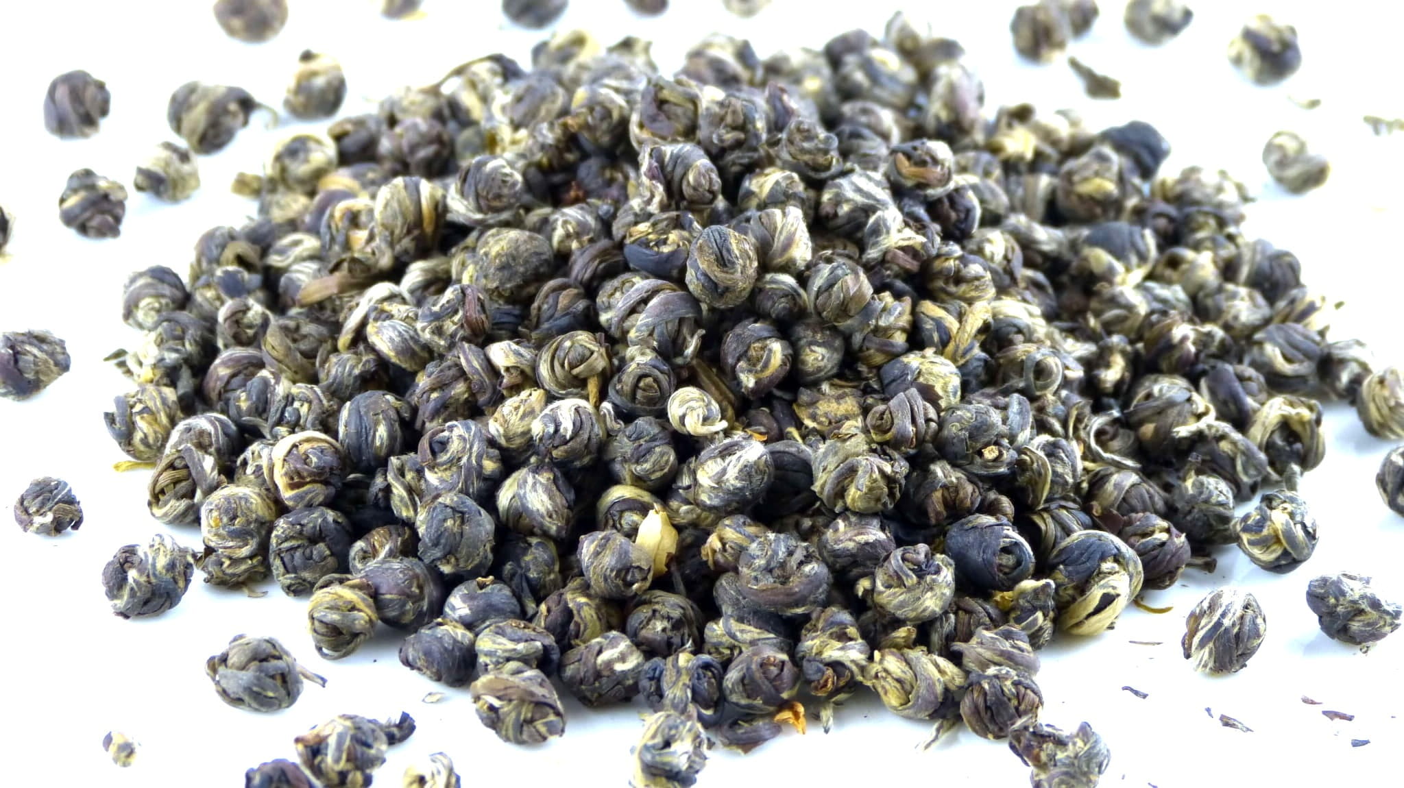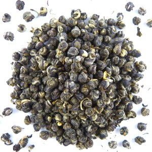 Wyśmienitej jakości zielony specjał produkowany od ponad 100 lat w regionie Fujian w Chinach. Jaśminowe perły wykonane są z dwóch dużych liści zielonej herbaty oraz jednego młodego pączka zrywanego tylko podczas wzrostu (koniec Marca/początek Kwietnia). Te delikatne liście zwijane są później w kształt małych perełek.