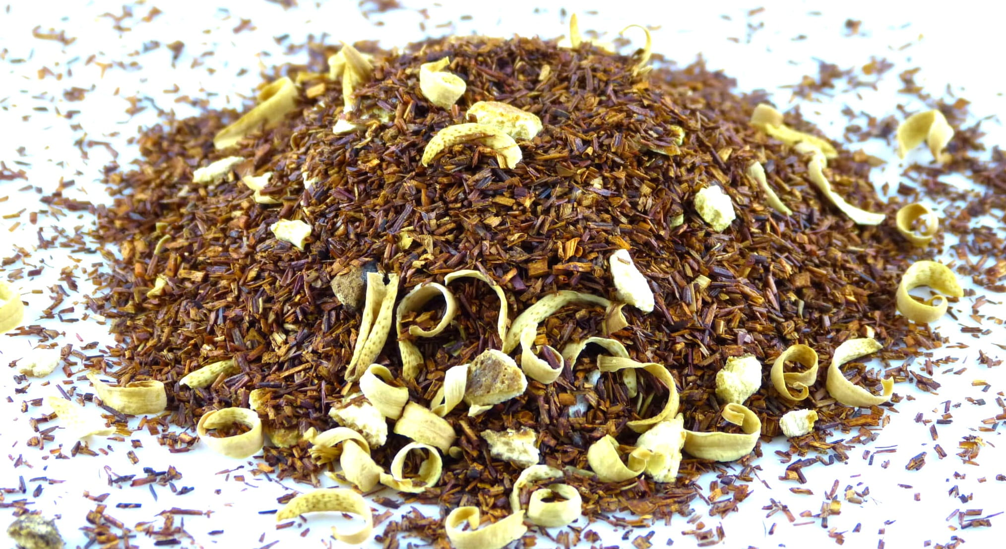 Pomarańcze zawierają dużo witaminy C i beta-karotenu oraz witamin z grupy B (w tym cenny kwas foliowy), które są korzystne dla skóry i nerwów. Zawierają również sporo cennego potasu, od którego zależy prawidłowe ciśnienie krwi i rytm serca. W połączeniu z Rooibosem, ta herbata to prawdziwa bomba witaminowa.