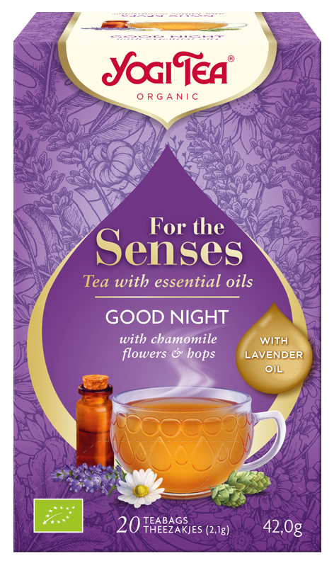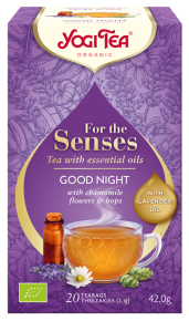 YOGI TEA® Spokojna noc (GOOD NIGHT) zaprasza w relaksującą podróż do krainy snów. Przyjemność, jaką daje starannie skomponowana kompozycja lawendowego olejku eterycznego, połączonego z łagodnymi kwiatami rumianku i chmielem, harmonijnie wprowadza w medytacyjny nastrój wieczoru i spokojne zakończenie dnia. "