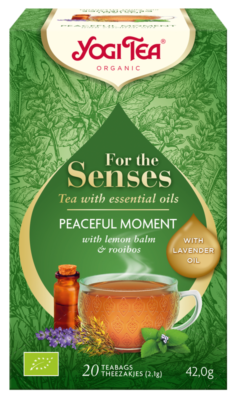 YOGI TEA® Chwila spokoju (PEACEFUL MOMENT) oczarowuje zmysły lawendowym olejkiem eterycznym.