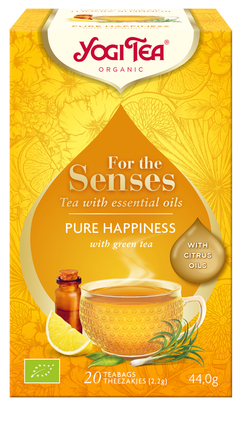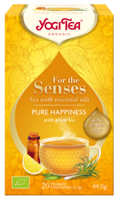 YOGI TEA® Czysta radość PURE HAPPINESS wznosi wrażliwość naszych zmysłów na wyższy poziom dzięki olejkom eterycznym orzeźwiającej trawy cytrynowej i kwaskowej cytryny. Staranne połączenie z zieloną herbatą Sencha i imbirem pozwala na wspaniałe doznania dzięki aromatowi, który już w trakcie zaparzania wywołuje uśmiech.
